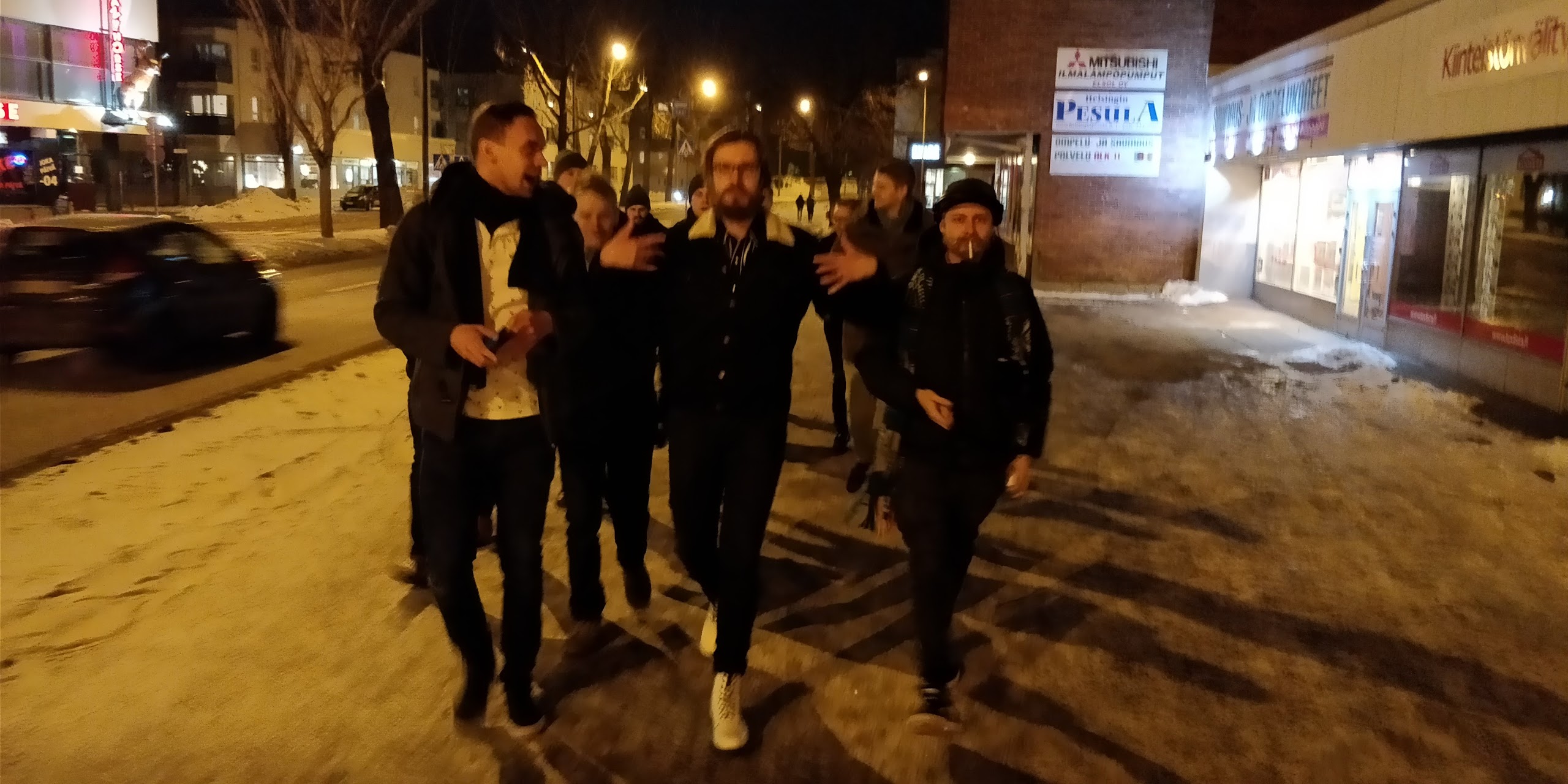 Malmin mukamas kovin menomesta. Pysähdytään alakerrassa luikauttamassa muutamat laulut!